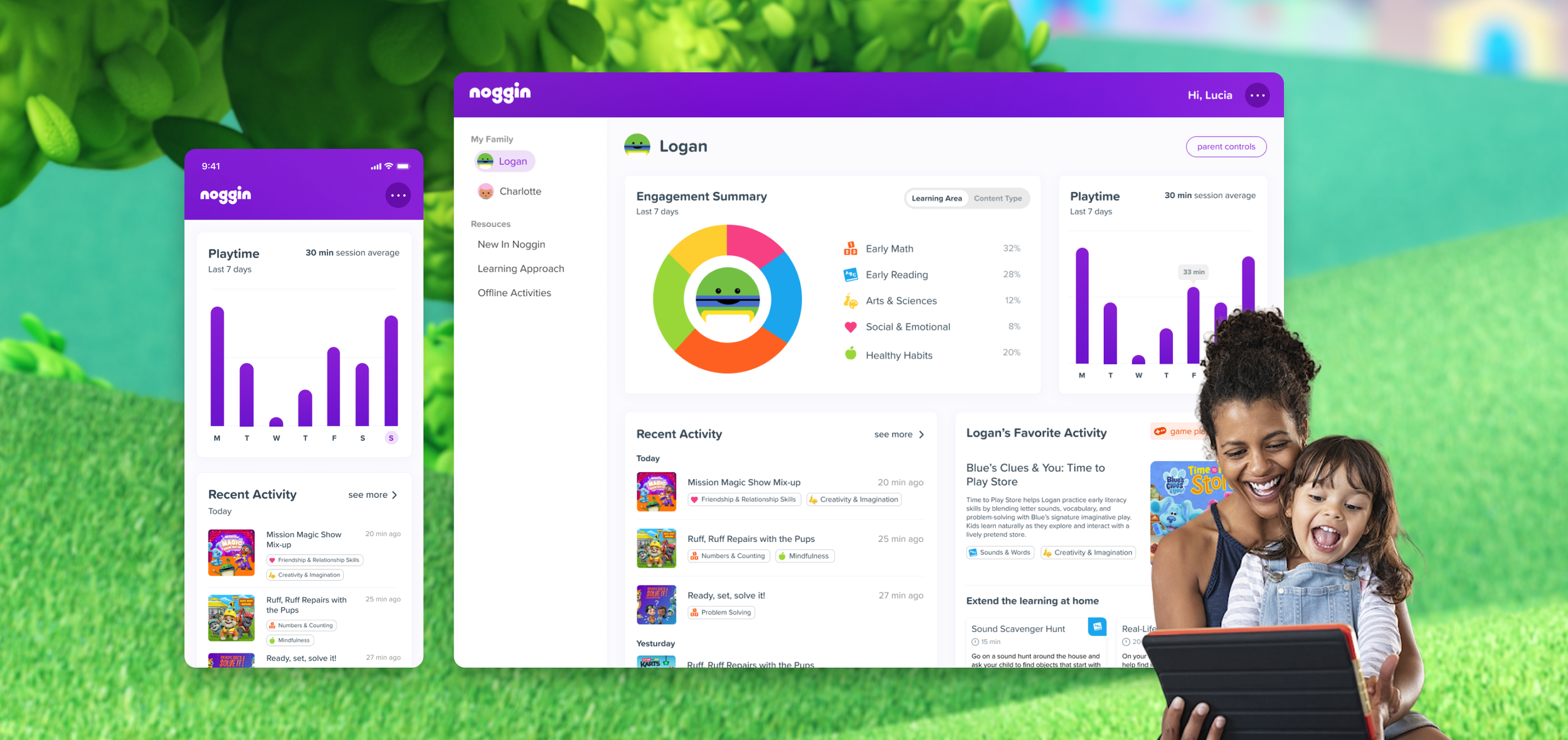 I designed Noggin’s first Parent Dashboard to help families better understand how their children were engaging and progressing on the platform. Previously, parents had little visibility into what their child was learning, creating a disconnect between the digital experience and real-world developmental support.